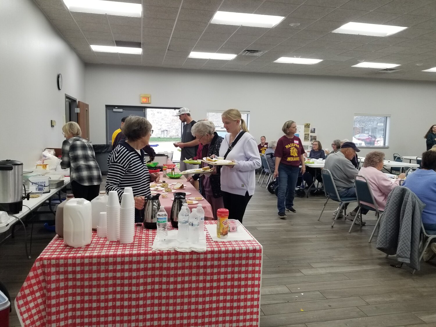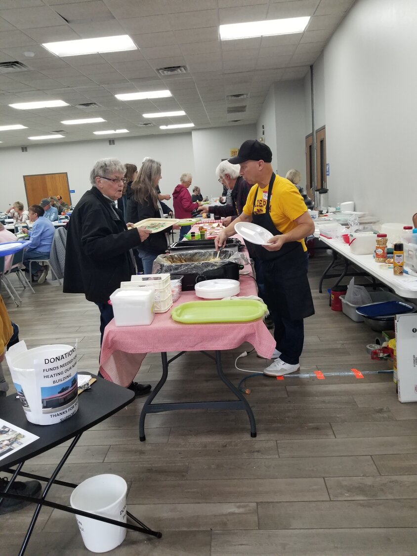 The annual Mazeppa Area Historical Society Fall Supper shut down a half hour early after serving about 175 people. Those lucky enough to get through the line before the food ran out enjoyed scalloped potatoes and ham, coleslaw, corn and a dessert. The free-will donation supper raised funds to put heat in the organization’s new building.